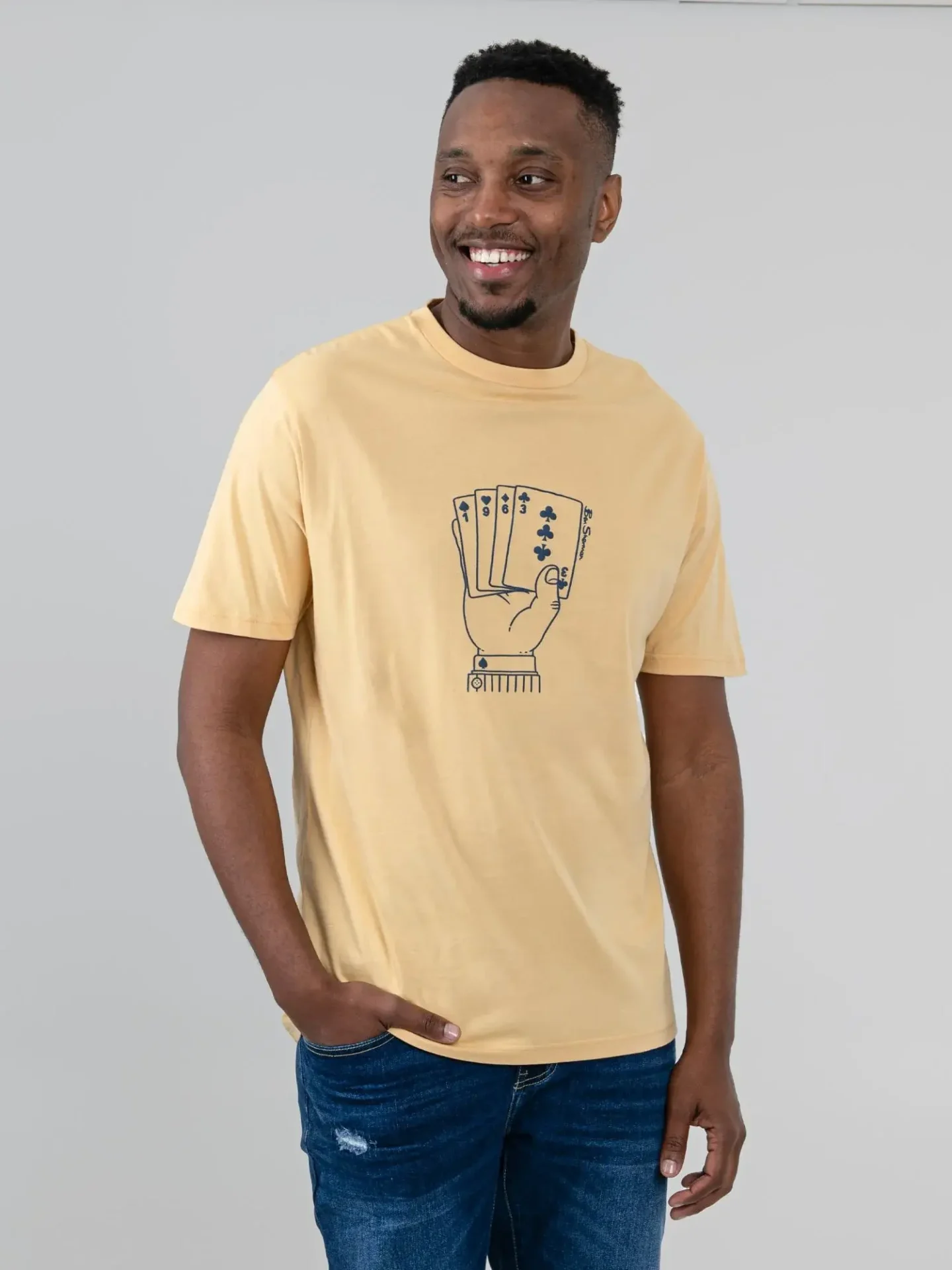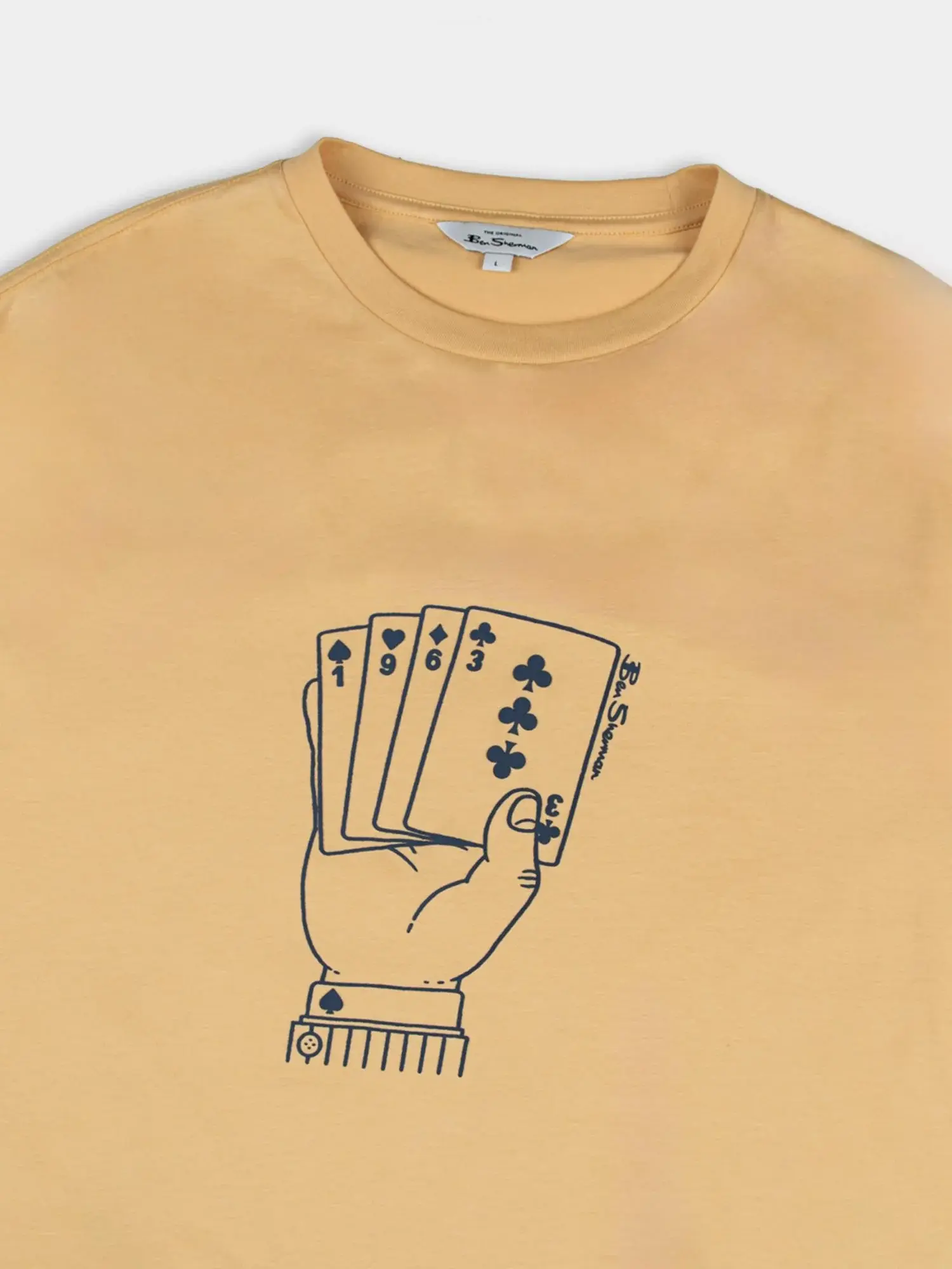 Ben ShermanWheat-coloured organic cotton t-shirt with a card graphic. Get a soft regular fit and a unique Ace design on the chest.