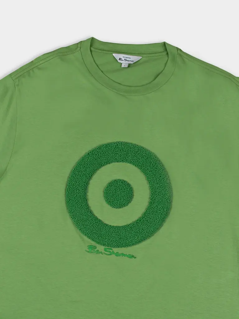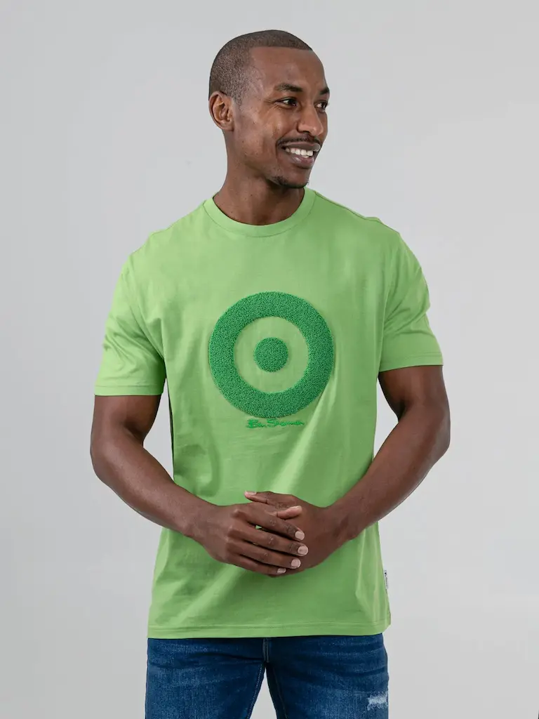 Ben ShermanGreen cotton t-shirt with a textured logo. You get a soft, breathable top featuring a unique towelling target design on the chest.