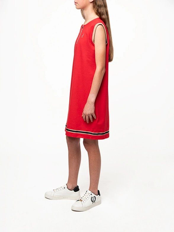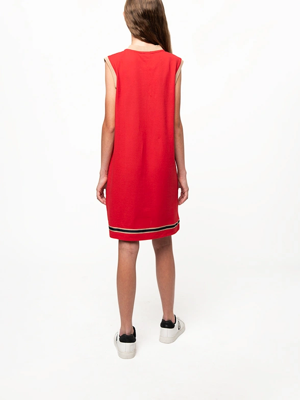 PoloSamba red sleeveless dress. Get a comfortable fit with a classic round neck and signature Polo branding.
