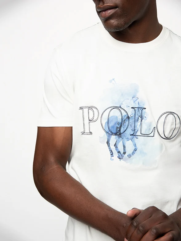 Polo Men’s Logo Printed SS T-shirt in white. Soft cotton tee with a bold printed logo on the chest.