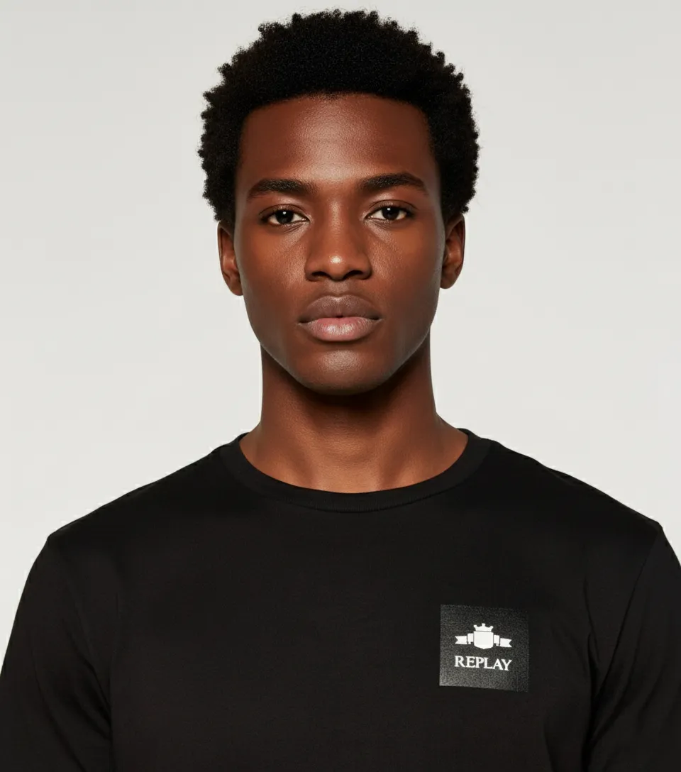 ReplayReplay men’s regular-fit t-shirt in a solid black. 100% cotton crew-neck with a small Replay box logo on the chest.
