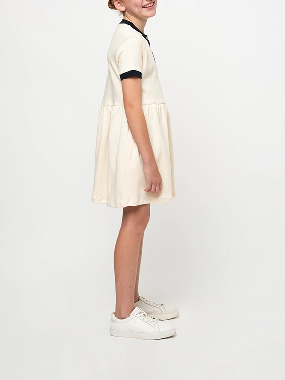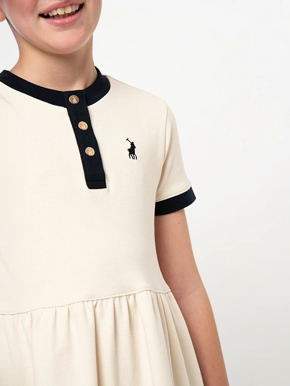 PoloSand cotton dress with a colour-block design. Get a soft, comfortable fit with a functional button placket and handy side pockets.