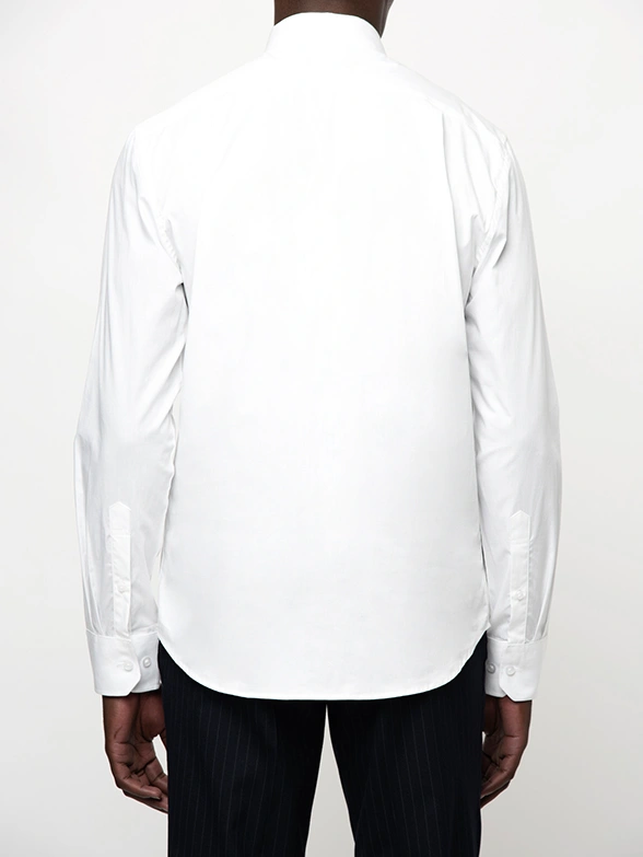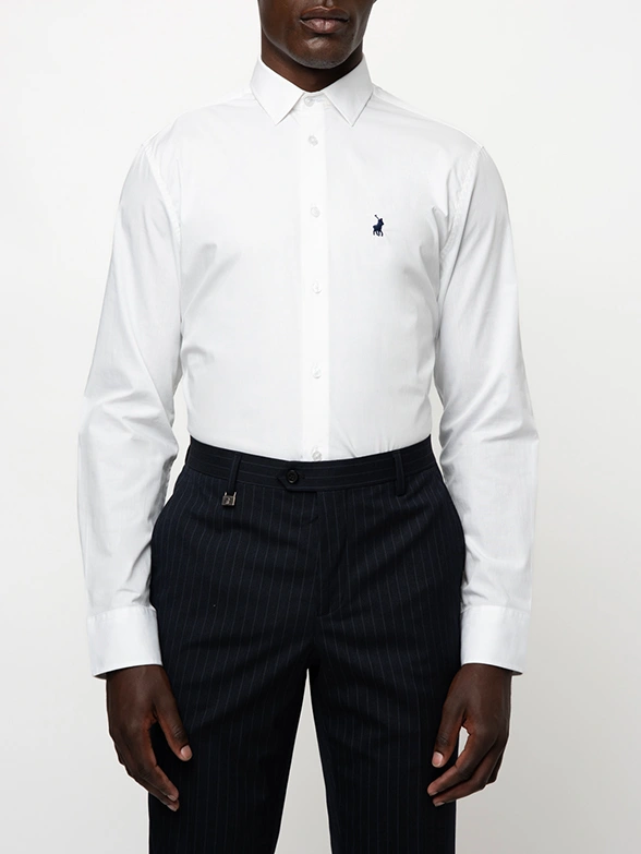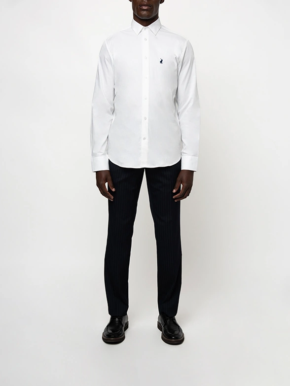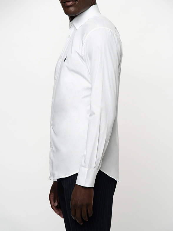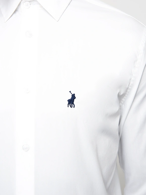 PoloWhite long-sleeve shirt with stretch. Get a modern slim fit that is comfortable to wear, finished with a button-down collar.