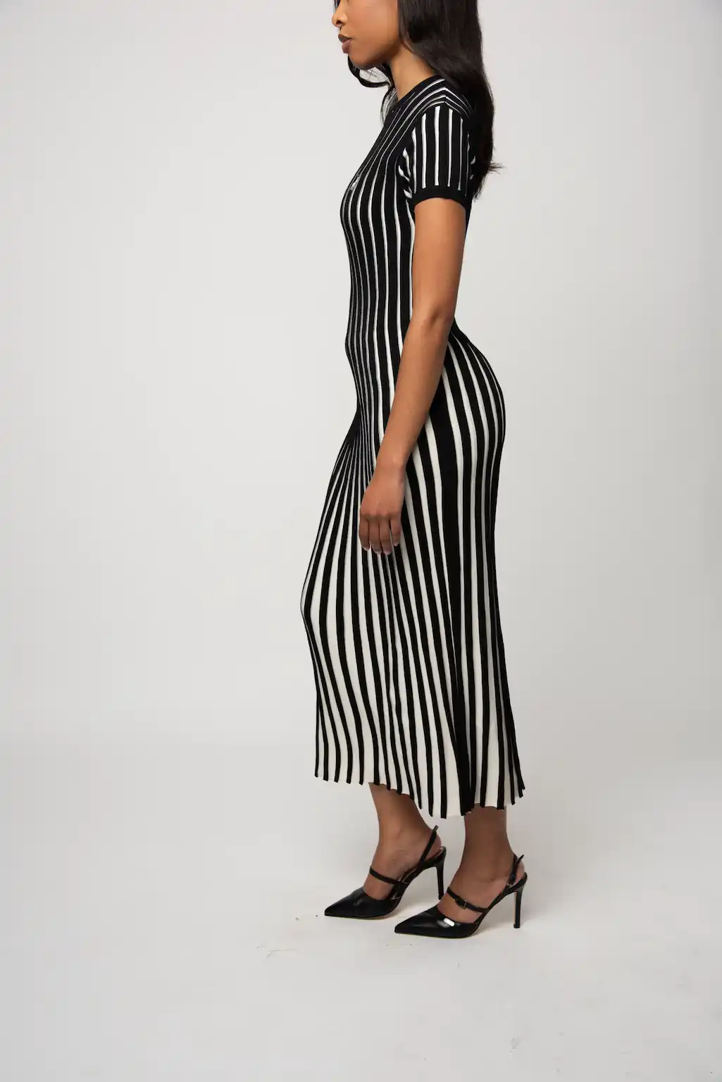 PoloBlack knitted dress made from a soft viscose blend. You get a comfortable ribbed texture in a flattering fit and flare shape.