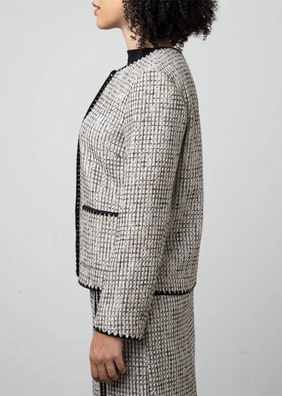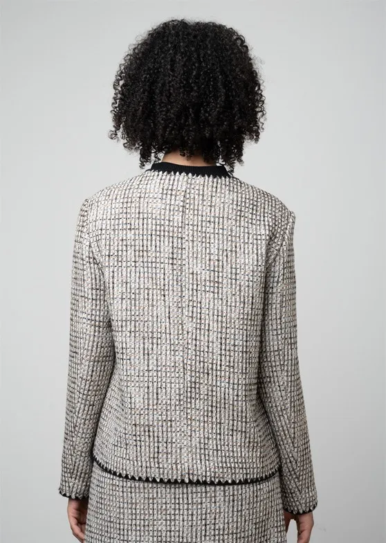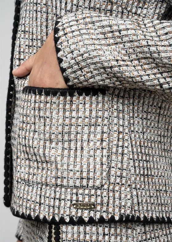PoloBlack jacket made from textured boucle fabric. You get a sophisticated layer with a classic crew neck and comfortable fit.